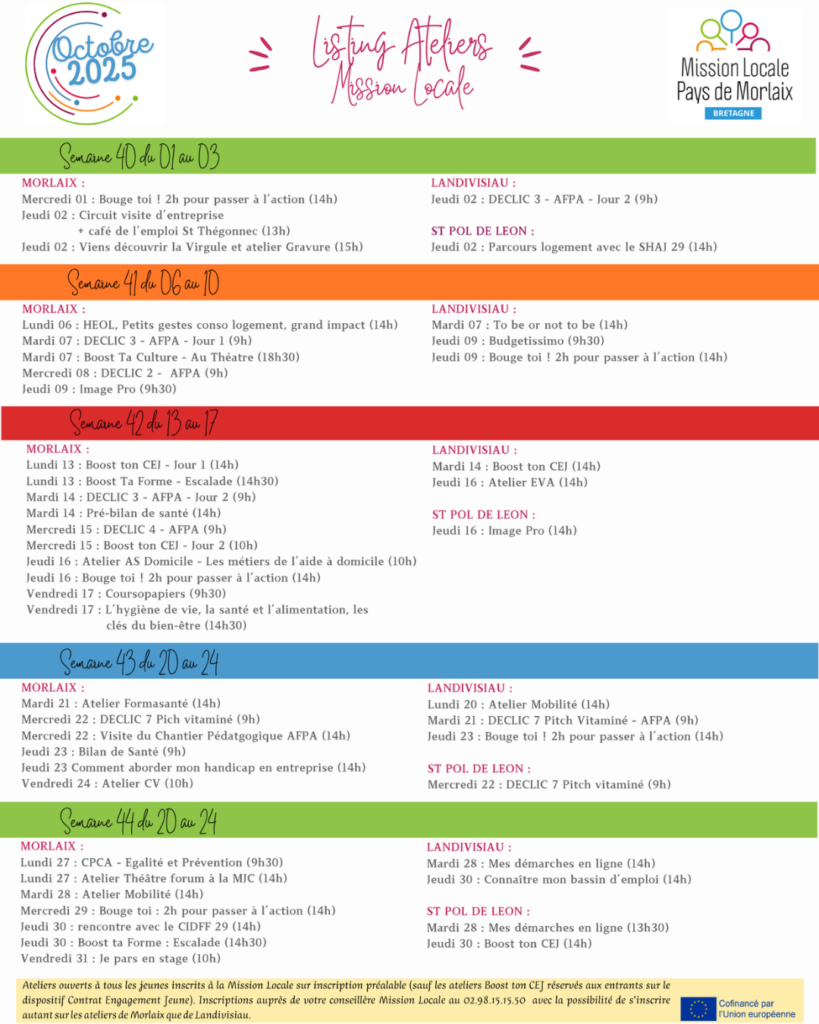 📌 Prenez contact avec la Mission Locale Morlaix pour vous inscrire à un ou plusieurs des ateliers qui vous sont proposés, au 02.98.15.15.50
